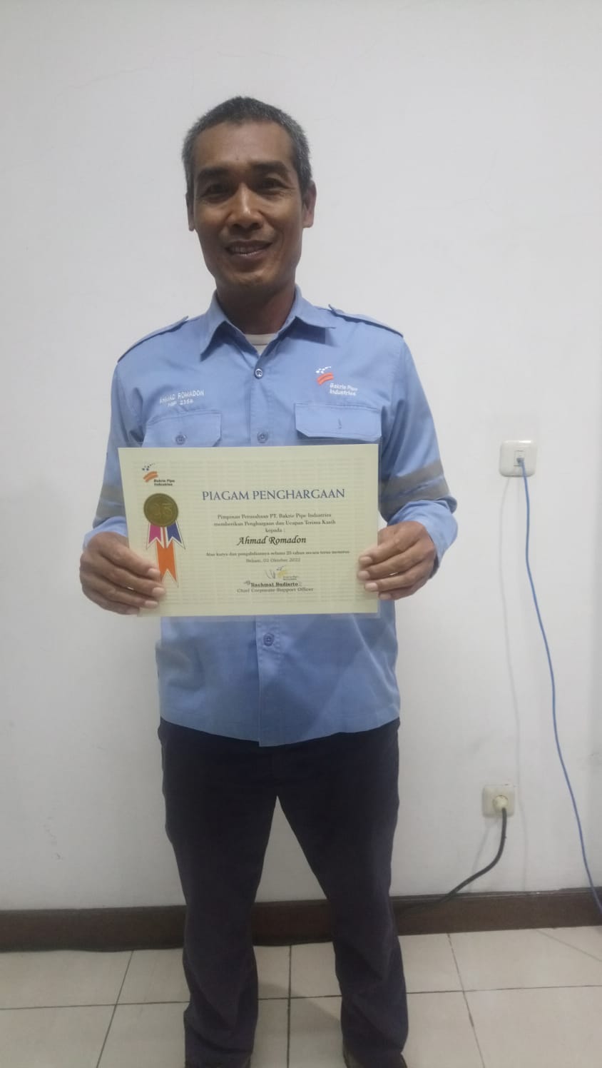 Manajemen PT. Bakrie Pipe Industries memberikan penghargaan kepada karyawan masa kerja 25 tahun dibulan oktober sebanyak 12 orang karyawan yang mendapatkan penghargaan